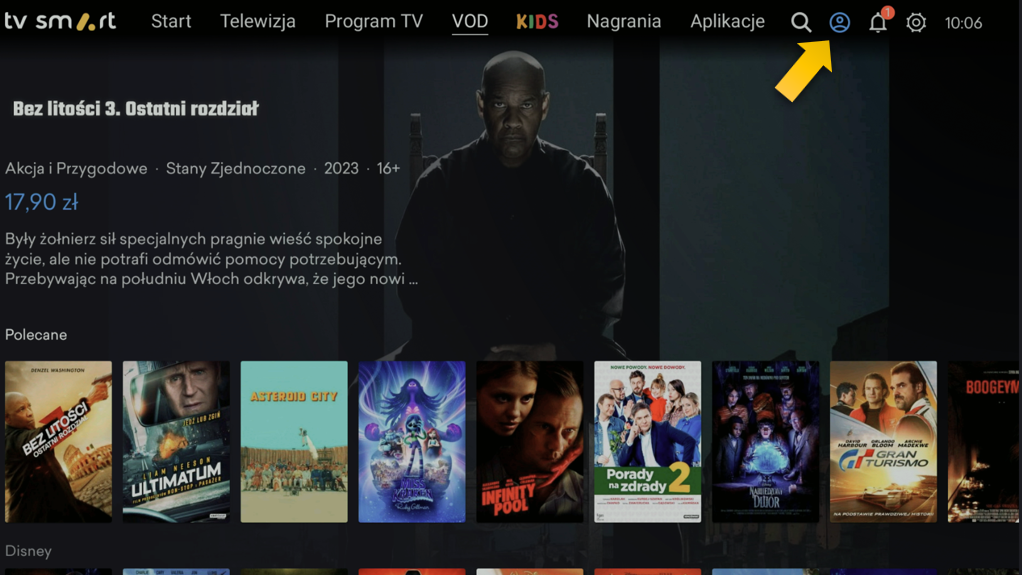 4. Po przejściu na „kafelek” i przytrzymaniu przycisku OK na pilocie dekodera wyświetli się komunikat : „Czy chcesz odświeżyć uprawnienia użytkownika?”